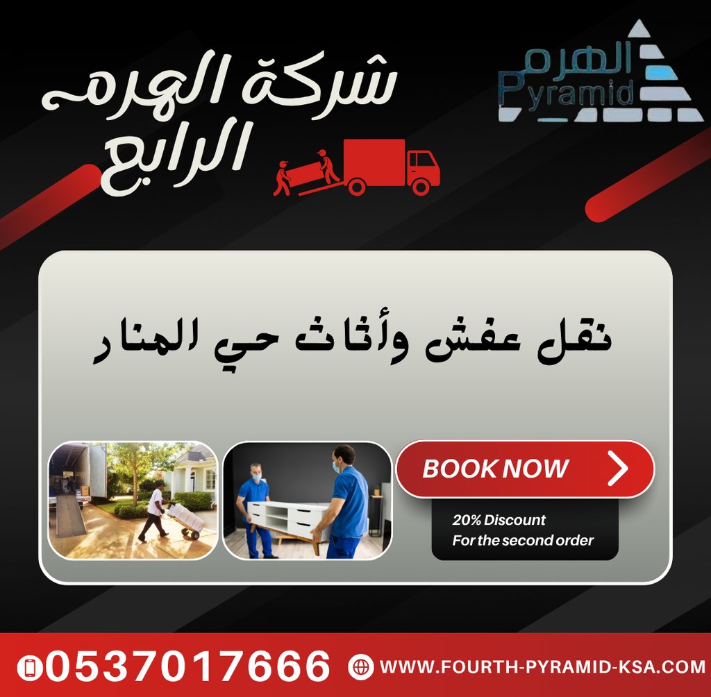 تقدم شركة نقل العفش والأثاث في حي المنار خدمات احترافية وموثوقة لضمان تجربة نقل سهلة ومريحة. فريقنا متخصص في جميع جوانب نقل العفش، بدءًا من التعبئة والتغليف وحتى النقل والترتيب في المكان الجديد. نحن نستخدم مواد تغليف عالية الجودة لحماية أشيائك أثناء النقل، ونضمن أن كل قطعة تصل إليك بأمان وسلام. تُعتبر الهرم الرابع في تقديم خدمات النقل من الشركات الرائدة في هذا المجال، حيث نتميز بخبرتنا الطويلة والتزامنا بتقديم أفضل خدمة عملاء. لا تتردد في الاتصال بنا على الرقم 0537017666، حيث سيكون فريقنا جاهزًا للإجابة على جميع استفساراتك والتنسيق لجعل عملية النقل سلسة وفعالة. نحن ندرك أن نقل الأثاث يمكن أن يكون تجربة مرهقة، لذا نحن هنا لمساعدتك في كل خطوة على الطريق. من المهم أن نكون موثوقين وشركاءك في هذه الرحلة، نضمن لك نقل سريع وآمن دون أي عناء. دعنا نساعدك في إعادة هيكلة حياتك في المكان الجديد!